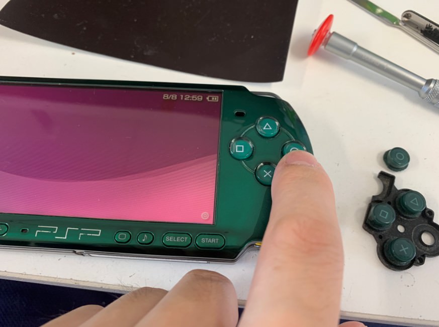 PSP(PCH-3000)の○ボタンが陥没!押した感触が無く押しても反応が無い症状がパーツ交換修理で改善![町田のゲーム機修理店]