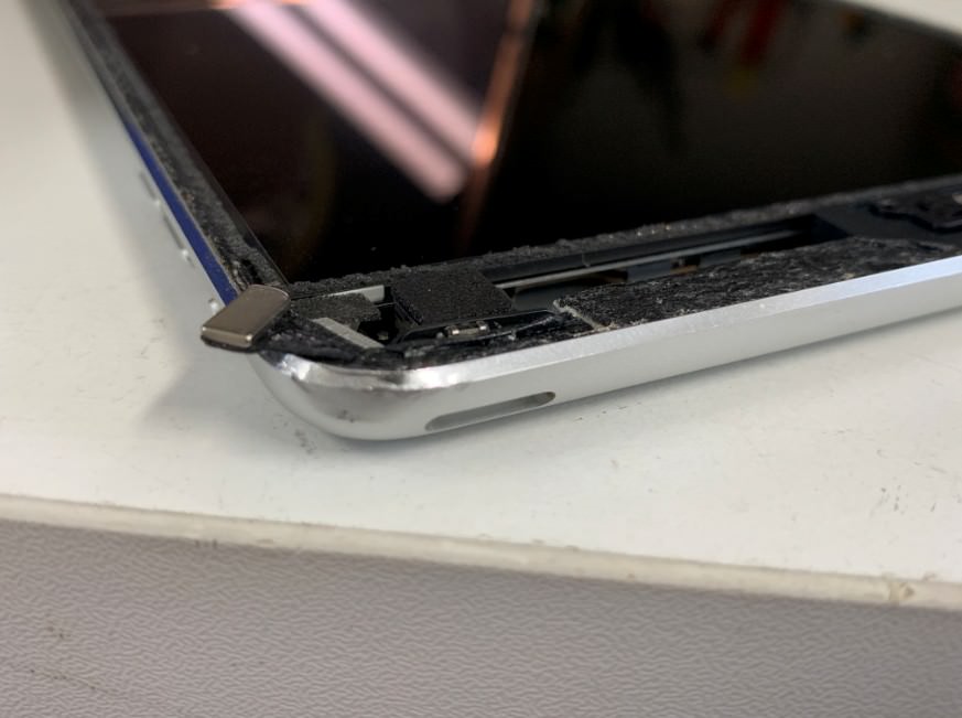 スマホスピタル町田ならこのようなiPadの電源ボタンの陥没修理を難なく承れます!