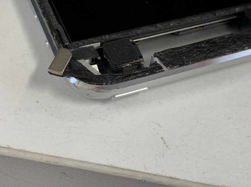 電源ボタンが陥没してしまう原因はフレームの歪みであることが多いので、電源ボタン周りのフレームを矯正します。