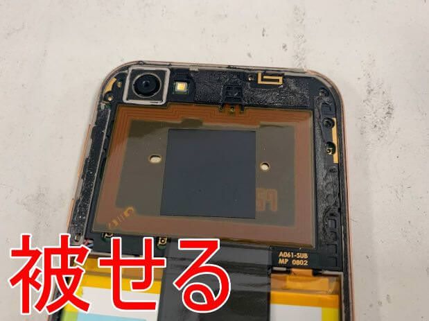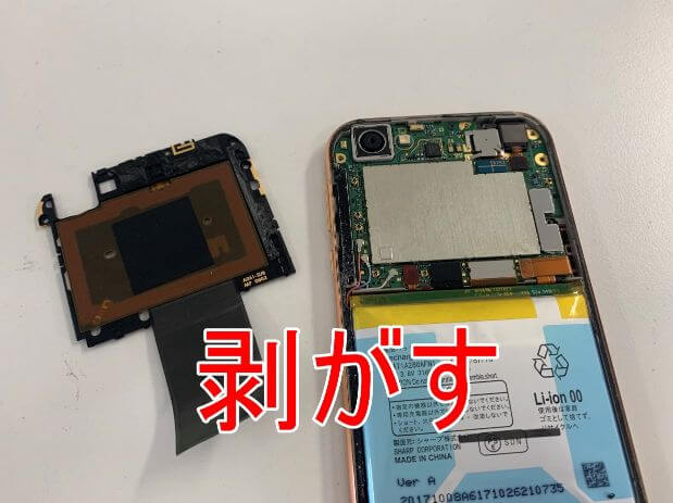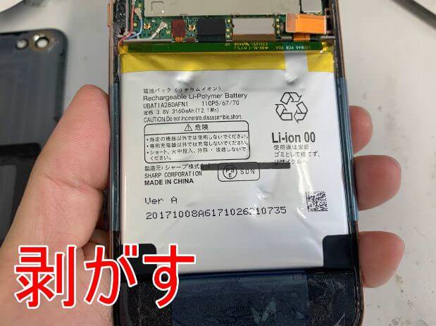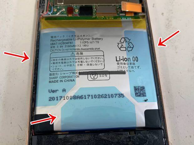 AQUOS Rの場合、バッテリーは3か所のシールで固定されています。