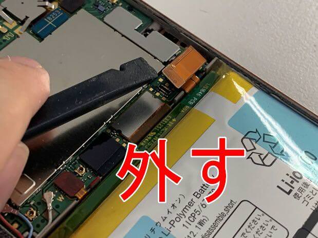 バッテリーコネクタを基板から抜くために基板を覆っているプレートを剥がします。