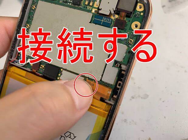 ズレた箇所でぐっと押し込んで基板側のコネクタを破損させると電源が入らなくなります。