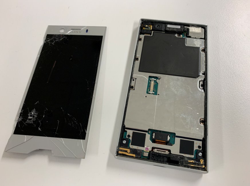 Xperia XZ1 Compact(SO-02K)の表面ガラスが割れて内部液晶が漏れてしまったり線が入ってしまって誤動作するようになってしまったということで、液晶画面交換修理のご依頼を頂きました。