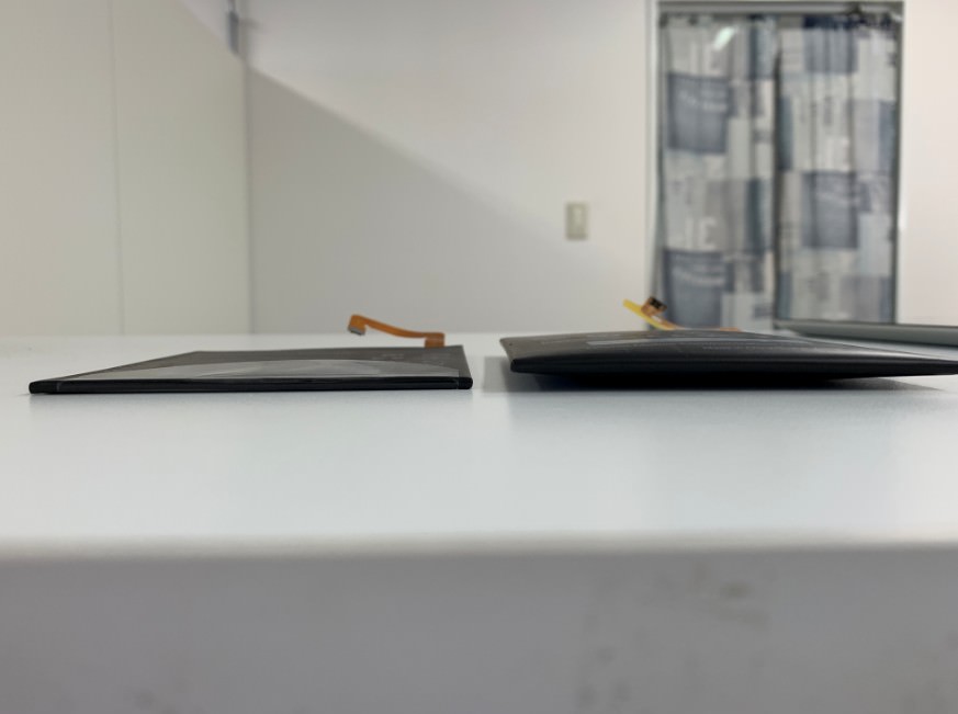 電池パックを取り出して通常の電池パックと比較してみるとこんなにも厚みが違います!