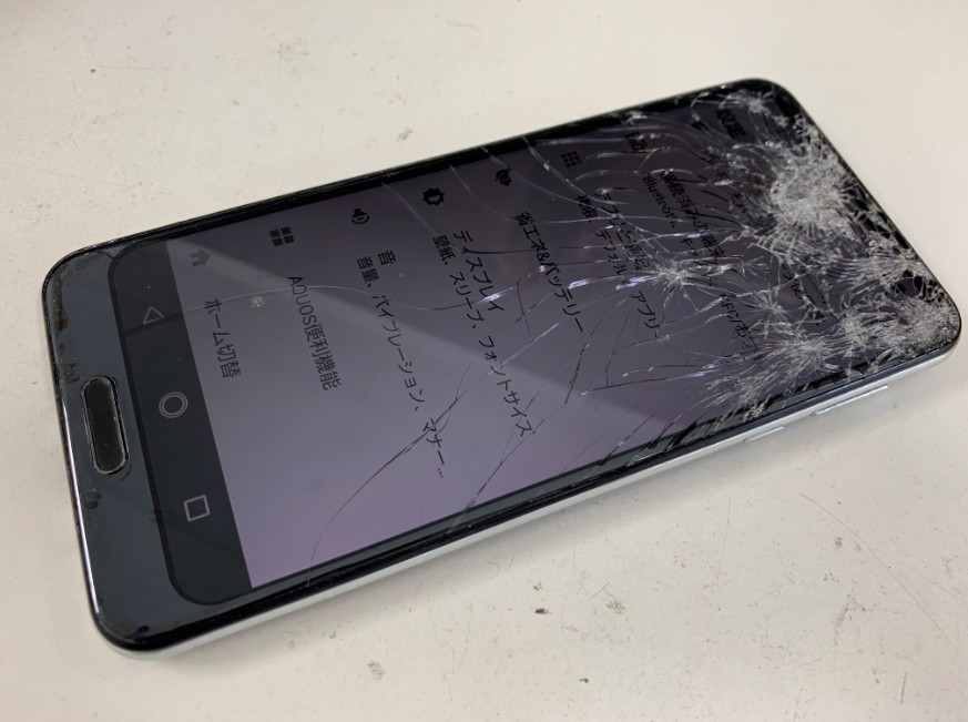 AQUOS R2(706SH)の液晶画面が粉々に割れた!誤動作する症状がパーツ交換修理で改善![町田のアンドロイドスマホ修理店]