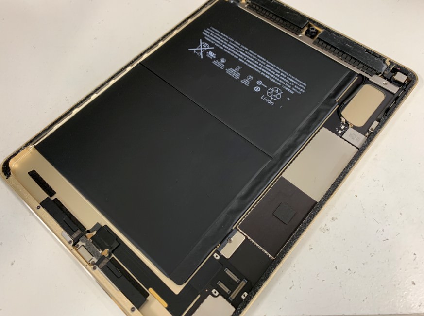 iPad Air2の内蔵電池パックの劣化が進んでしまってついには充電ケーブルを抜いたら即電源が落ちるようになってしまったとご相談を頂きました。