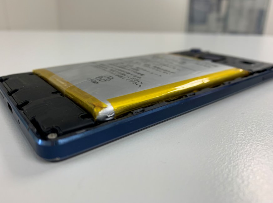FREETEL RAIJINの内蔵バッテリーが劣化して大きく膨張してしまいハマグリ化して、今では電源が入らなくなってしまっているということでご相談を頂きました。