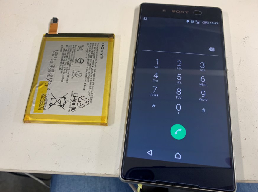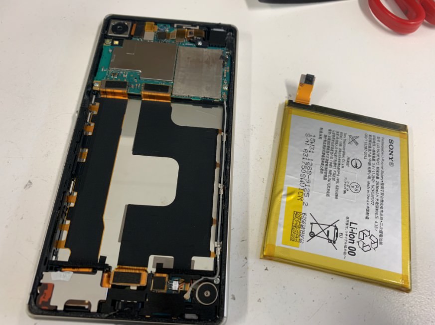 XperiaZ4(SO-03G)を3年間使用して、今ではyoutubeなどを見ていると1分間に2%くらい電池残量が減ってしまうようになったということでバッテリー交換修理ご依頼を頂きました。