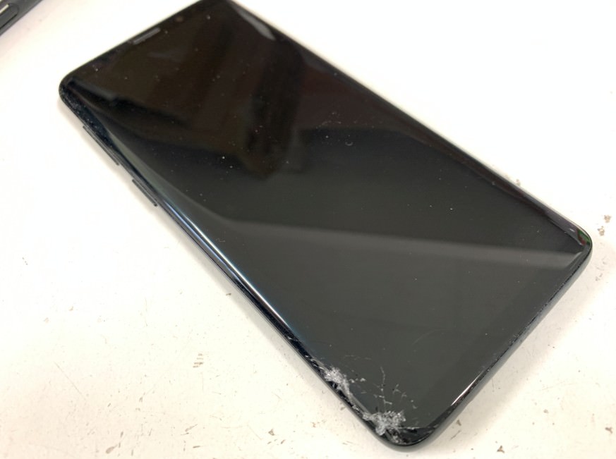 Galaxy S9(SC-02K)の表面ガラスが割れてしまってしばらく使用していると、ある日突然画面に何も映らない状態になってしまったということで修理ご依頼を頂きました。