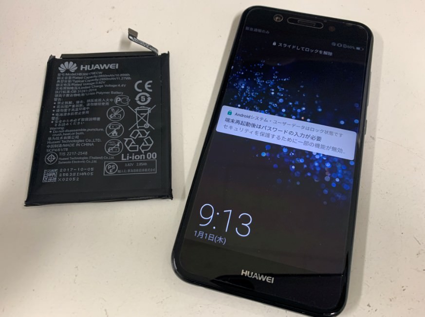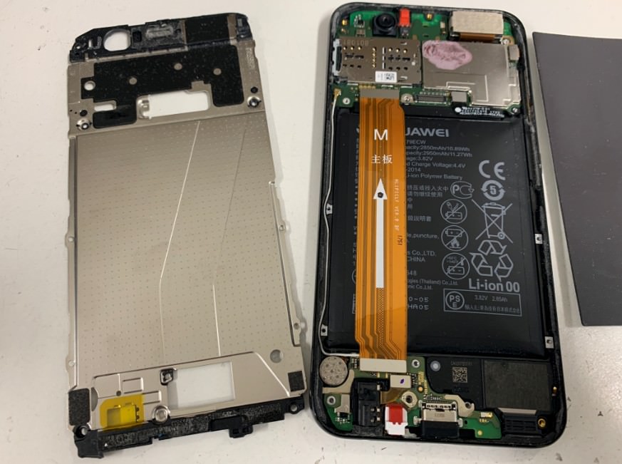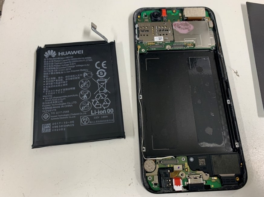 nova2のバッテリー膨張で画面が浮きハマグリ化!所要時間40分で電池を新品に交換して充電持ちも改善![町田のHUAWEIスマホ修理店]