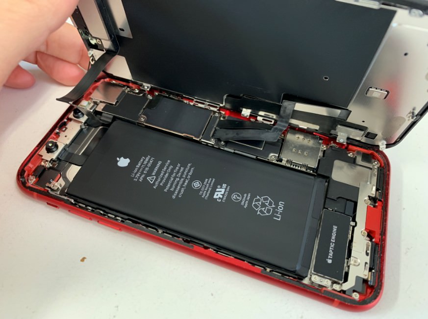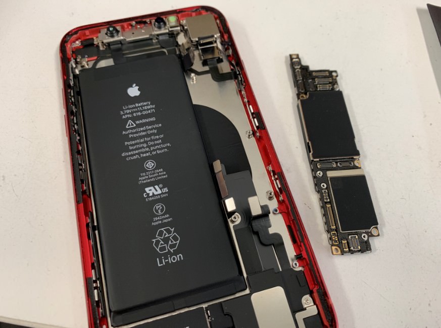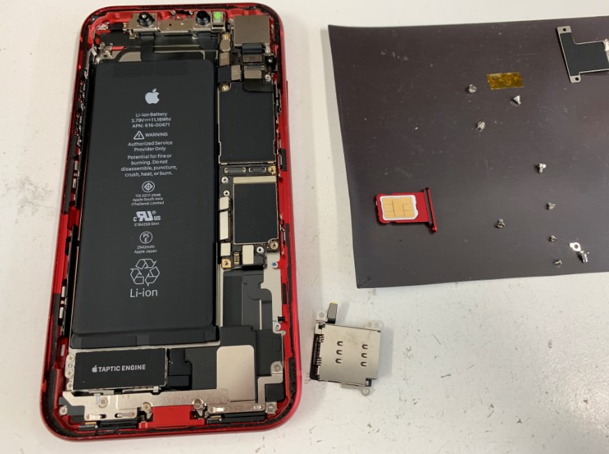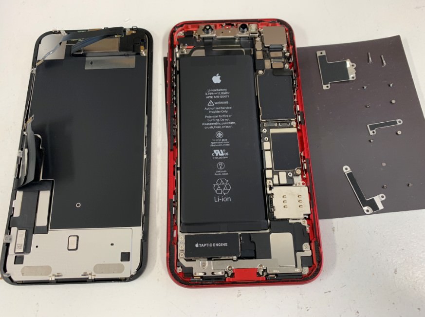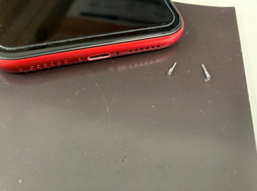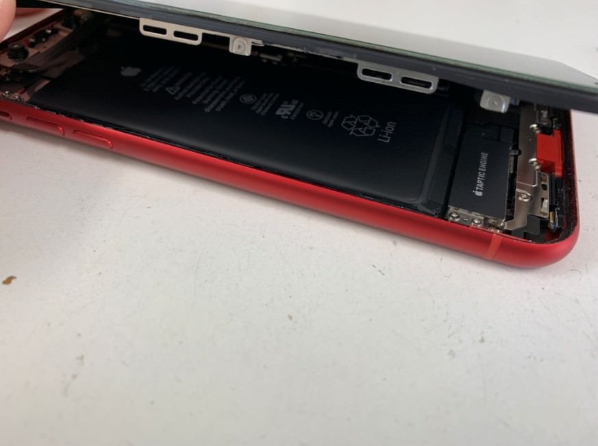 iPhoneXRは本体と画面が強く接着されているので割らないように慎重に分解します。