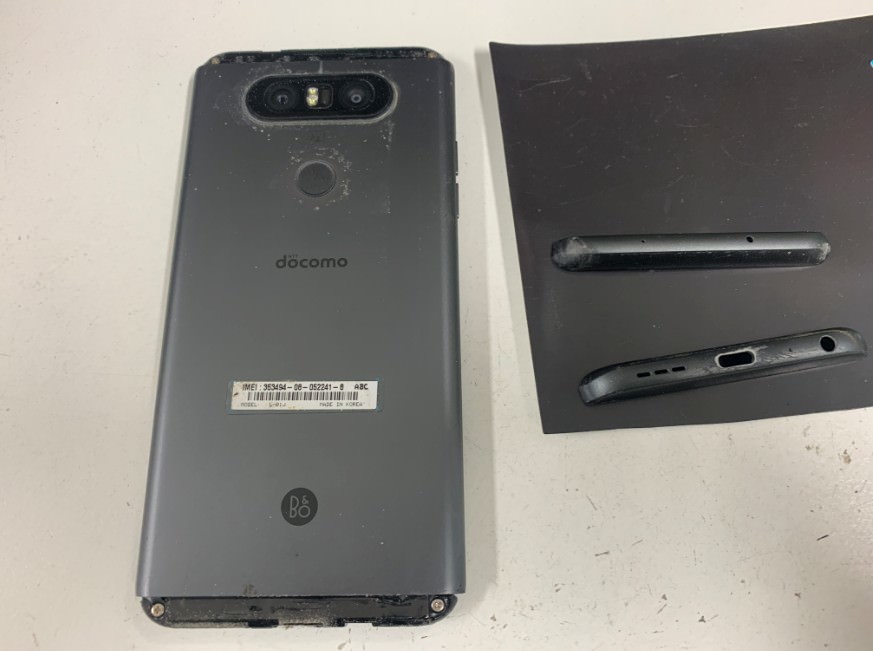 表面ガラスが割れてしまって端が粉々に割れてしまっているV20 Pro(L-01J)の修理依頼を頂きました。