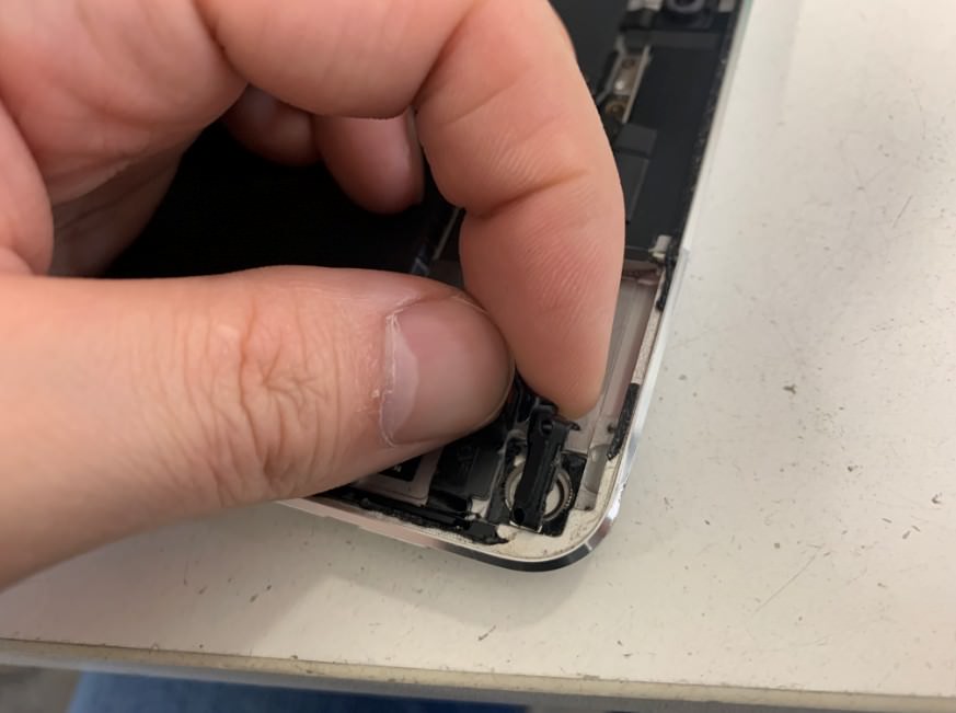 分解してこのように凹んだまま出てこなくなってしまったスリープボタンを修理します。