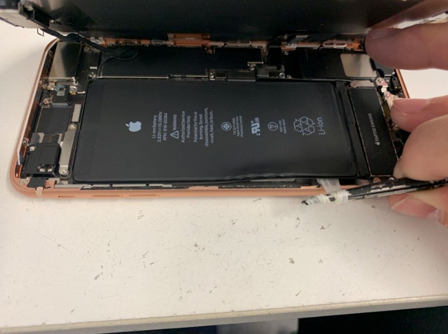 iPhone8Plusのバッテリーを交換するにはまず液晶画面を剥がす必要があります。
