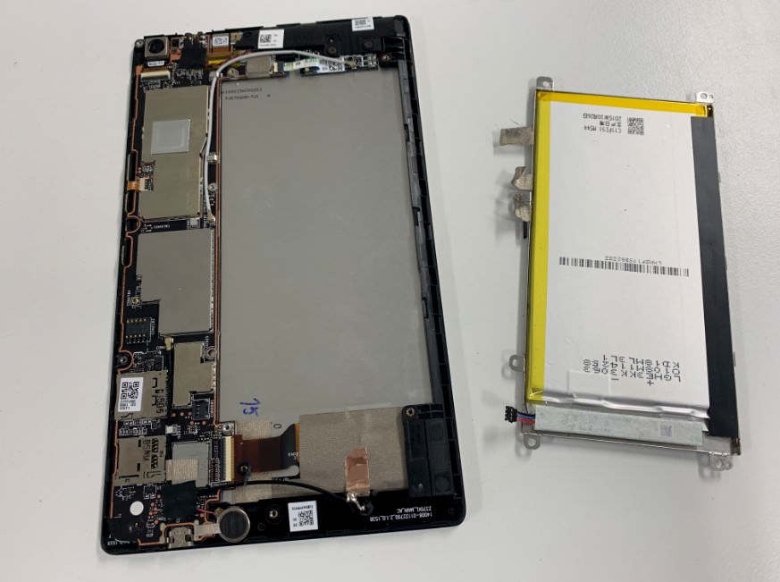 取り出したバッテリーと基板を別の画面パーツへ移植すると・・・