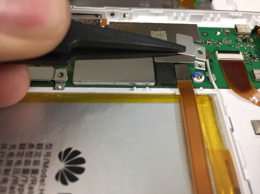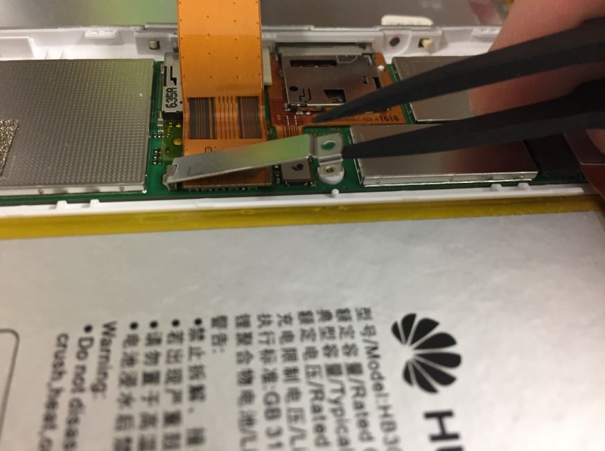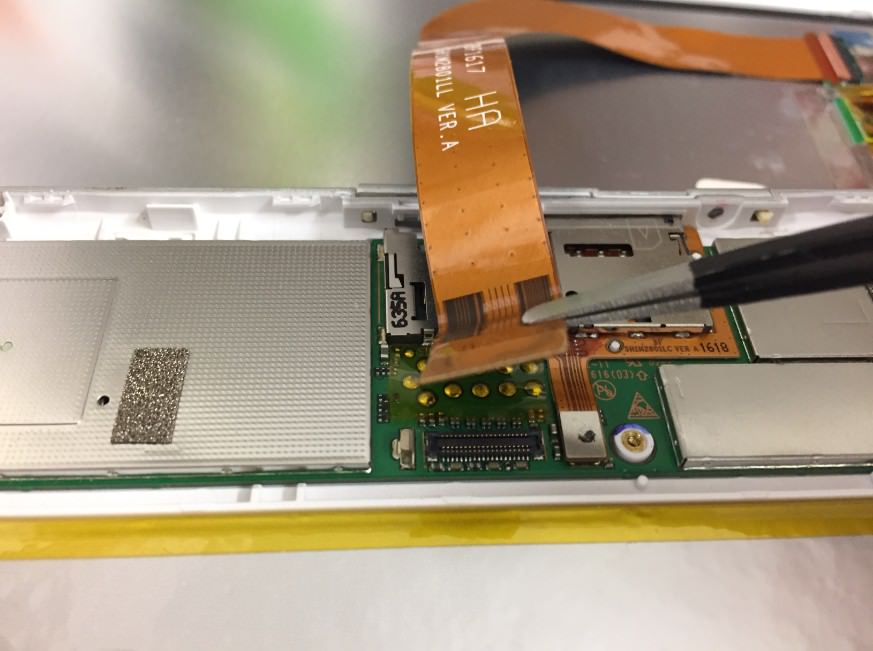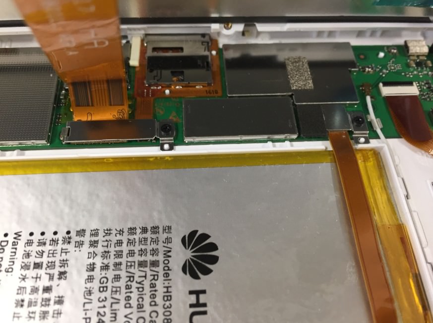 画面を開くとバッテリーと画面のコネクタがプレートで止まっているのが確認出来ます。