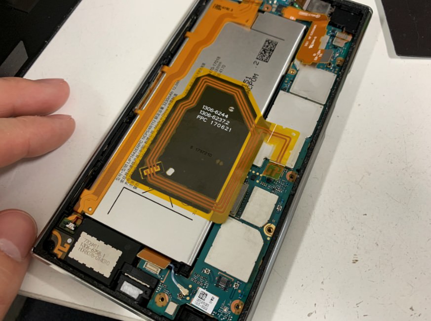 後は充電口やNFCや液晶画面のコネクタを外し、アンテナを外します。