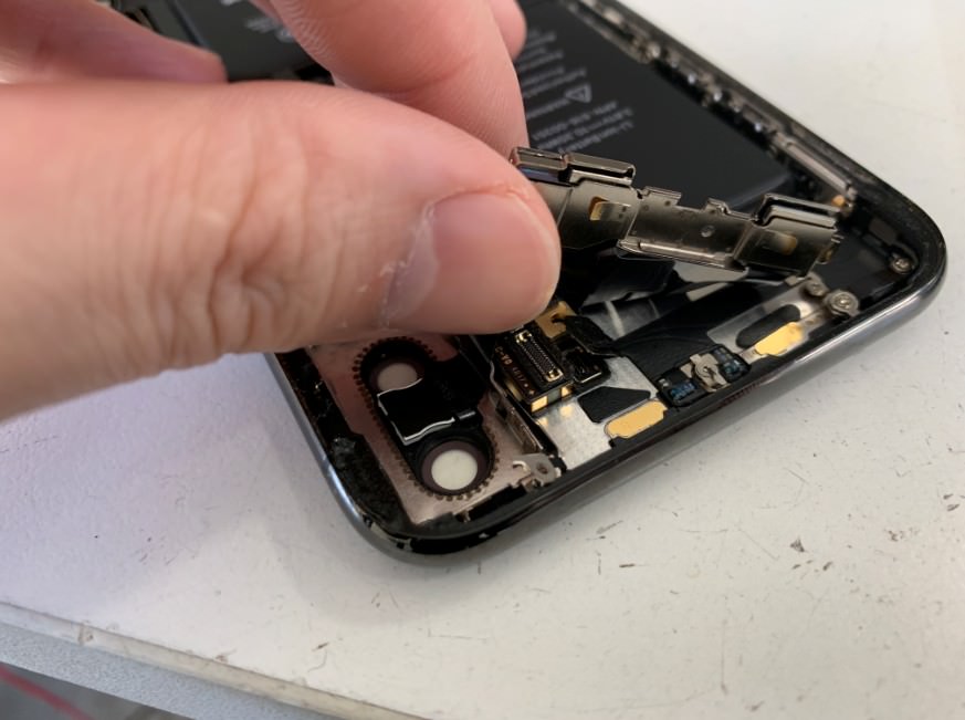 フロントカメラの下にもコネクタがあるので忘れずに外しておきます。