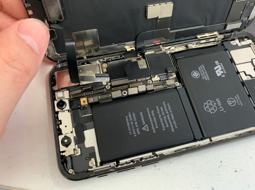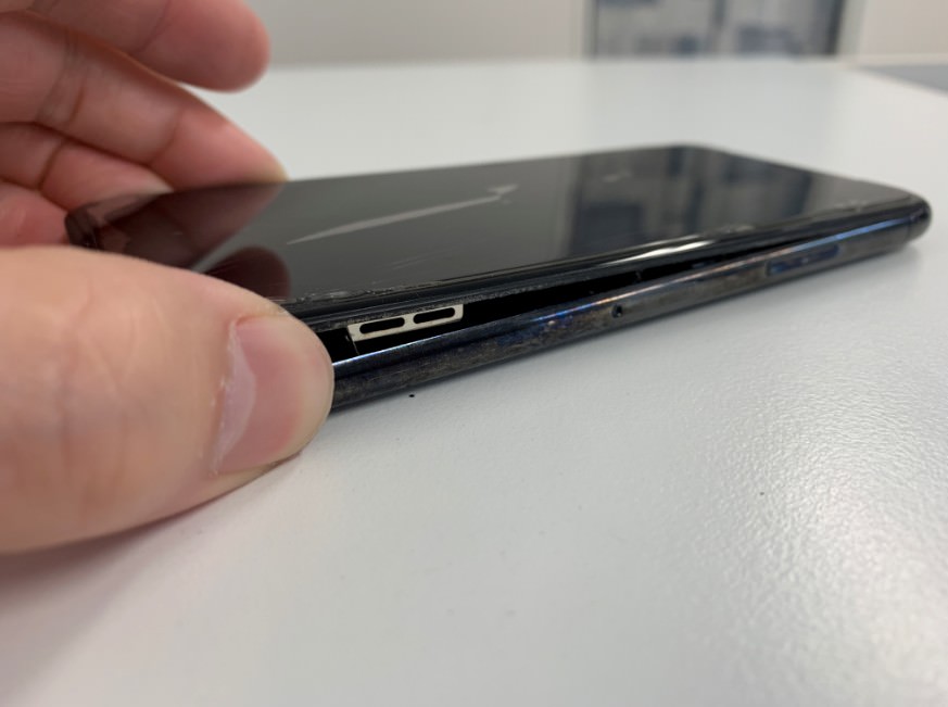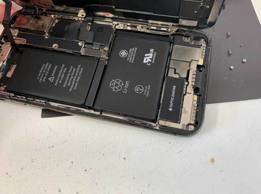 iPhoneXは耐水仕様なので、画面と本体は強く接着されています。
