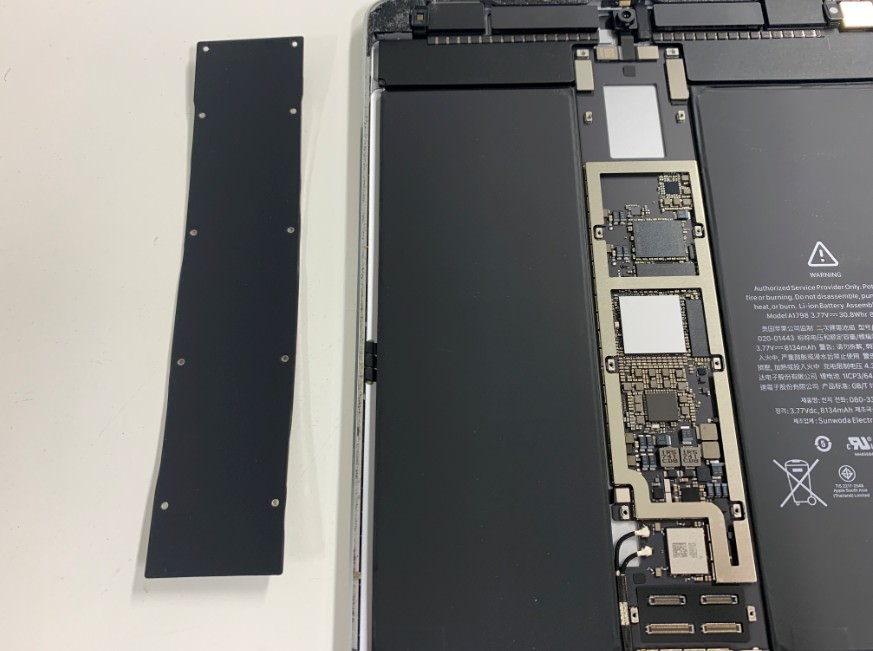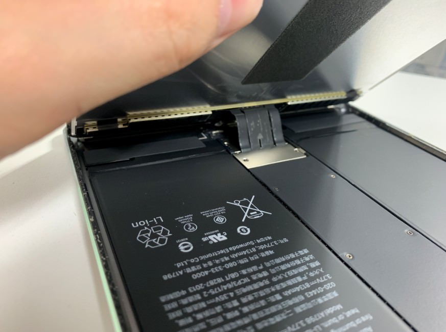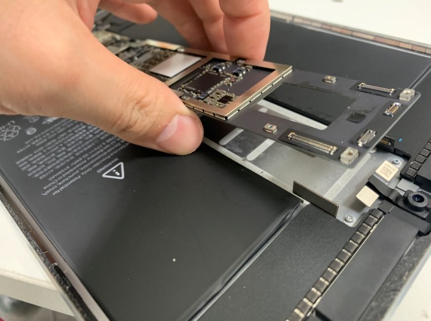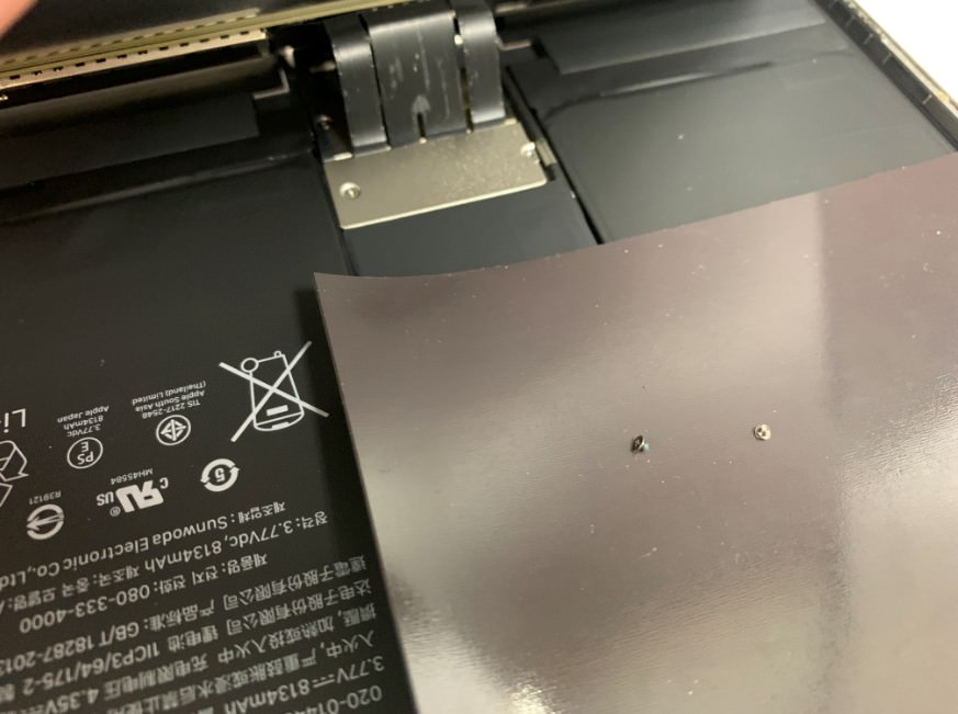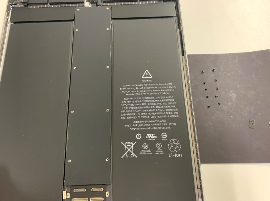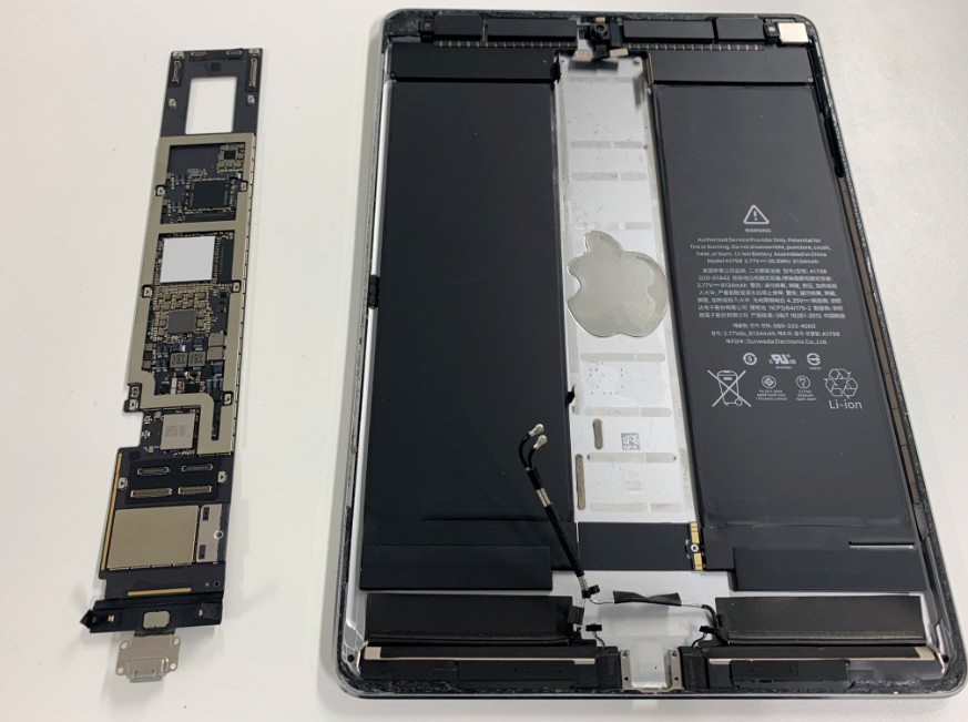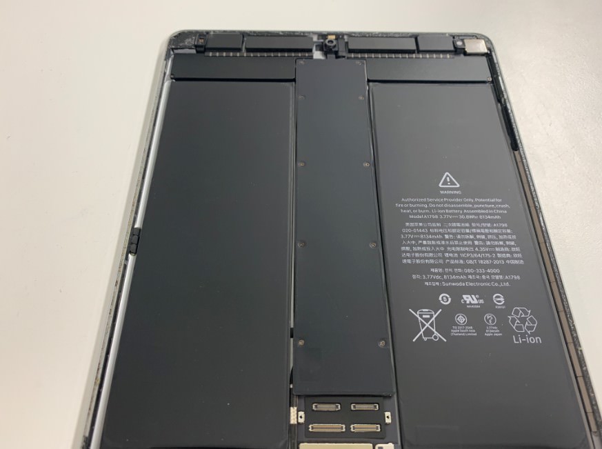 iPadPro 10.5インチの場合、基板を取り出さないとバッテリーを交換出来ません。