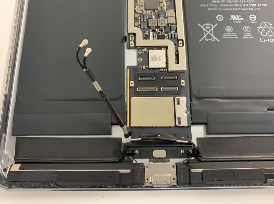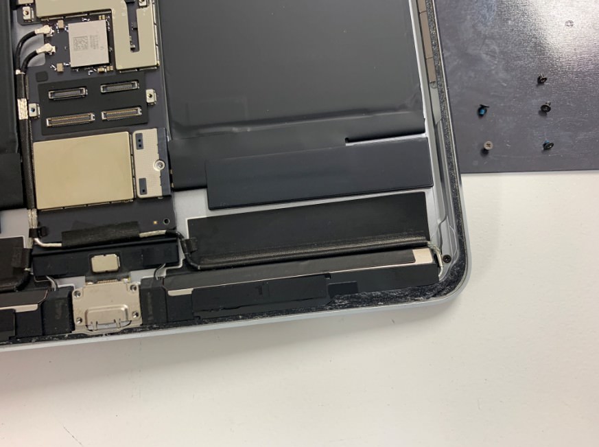 そしてアンテナ、スピーカーケーブルのコネクタ、スマートキーボードの接点のコネクタを外します。