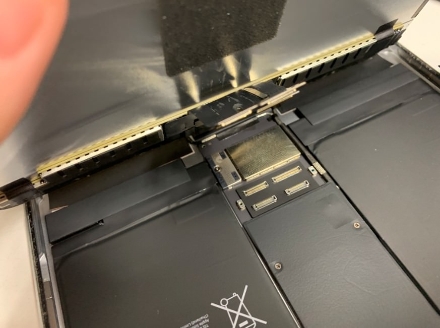 iPadPro 10.5インチは本体中央に液晶画面のコネクタをが付いています。