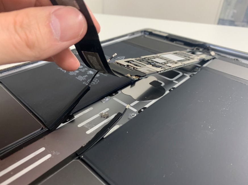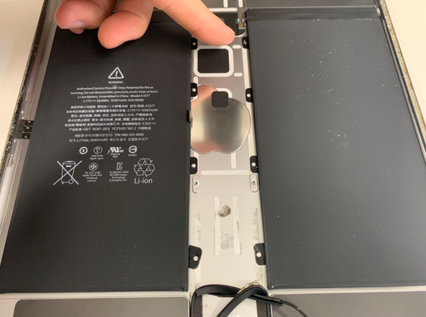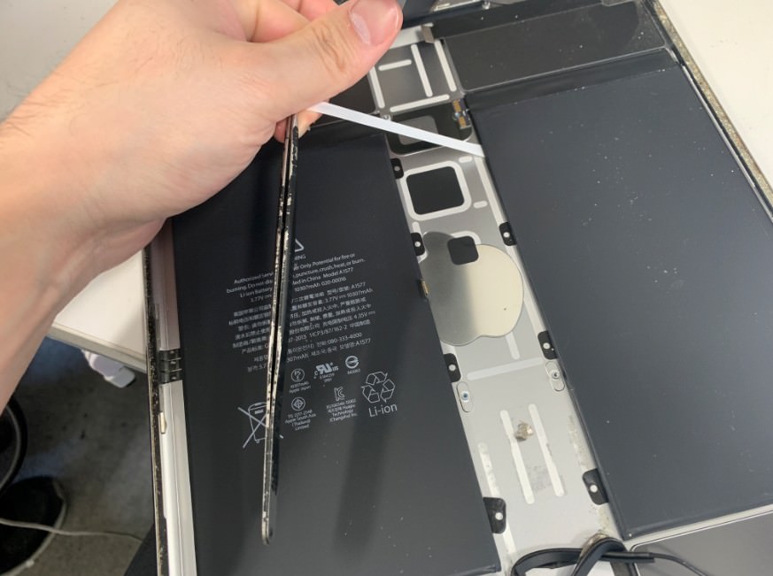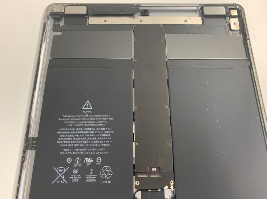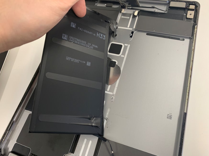 iPadPro 12.9インチ 第1世代はバッテリーが基板の下にあるので、基板を剥がす必要があります。