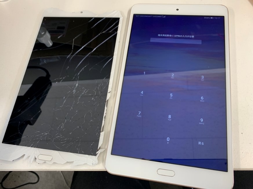 docomoタブレットのdtab(d-02K)のガラスが割れてしまってと修理のご依頼を頂きました!