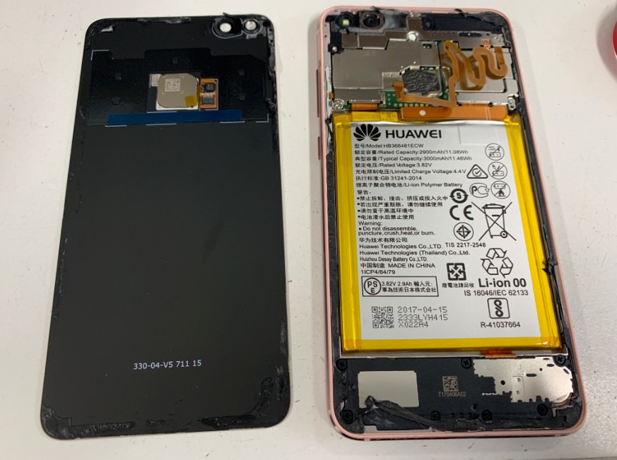 このように電池パックを本体から剥がすのですが、HUAWEIは電池パックが非常に強力に本体に接着されています。