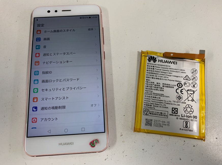 HUAWEI P10liteの電池を即日交換!充電残量が急激に減る症状が作業時間30分でスピード解決![町田のアンドロイドスマホ当日修理店]