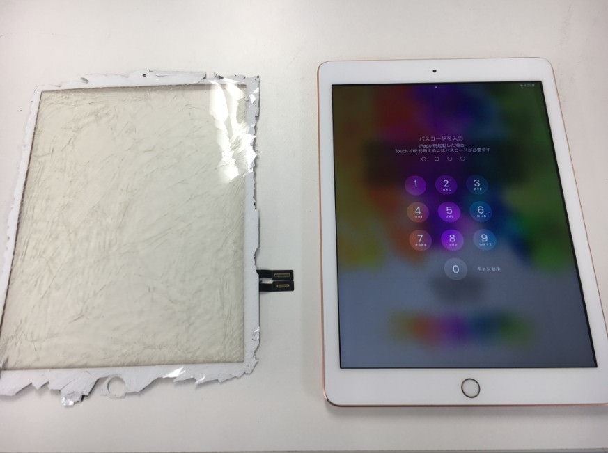 iPad第6世代の表面ガラスが粉々に割れてしまったということで画面交換修理のご依頼を頂きました!