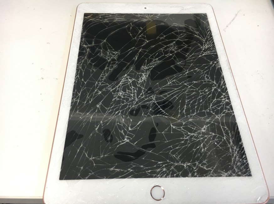 iPad第6世代の表面ガラスが粉々に割れた!画面修理後は新品同様に!専用の強化ガラスフィルム貼り付けサービス有![町田のタブレット修理店]