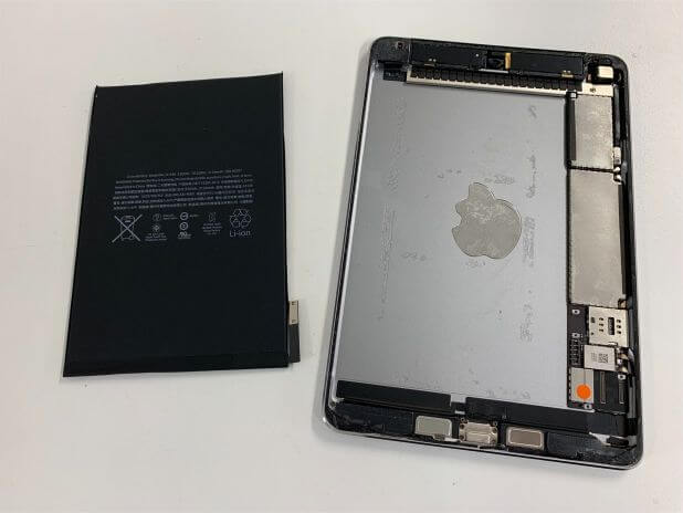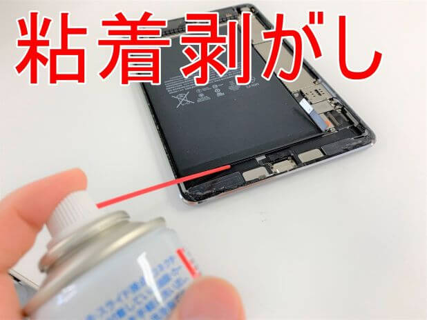 iPad mini4のバッテリーは本体フレームに接着されているので…