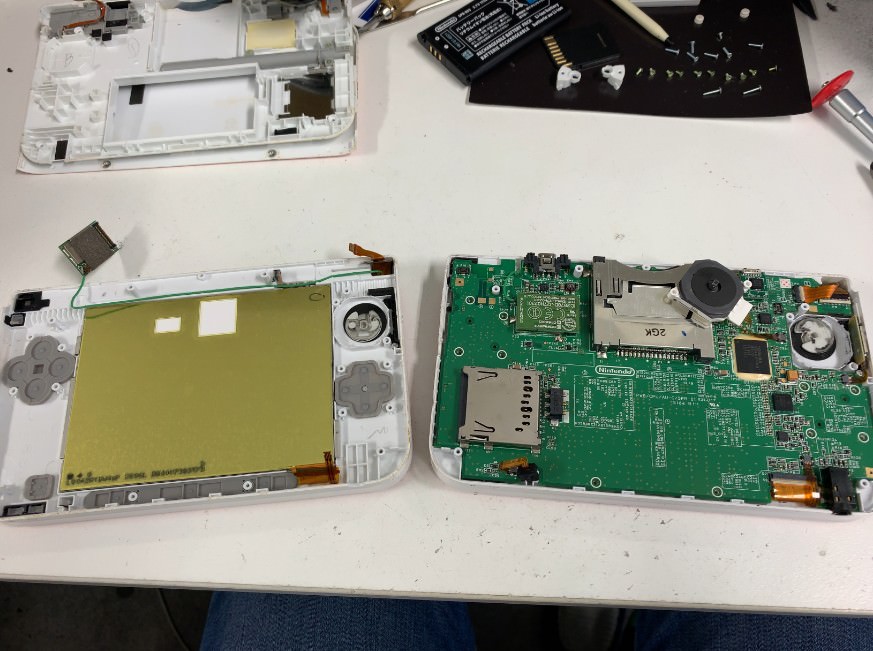 スマホスピタル町田なら3DSLLの本体を常備しており、お客様の基板をその本体に乗せかえて、一時的に使用できるように復旧させることが出来ます。