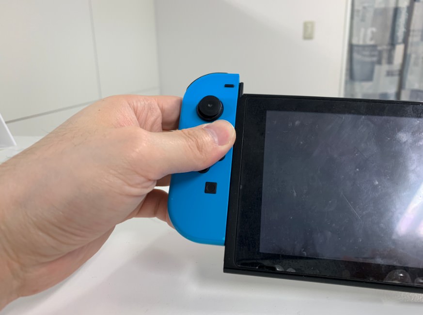 本体を支えずにジョイコンだけを持って持ち上げると、このようにするっと取れてしまいます。