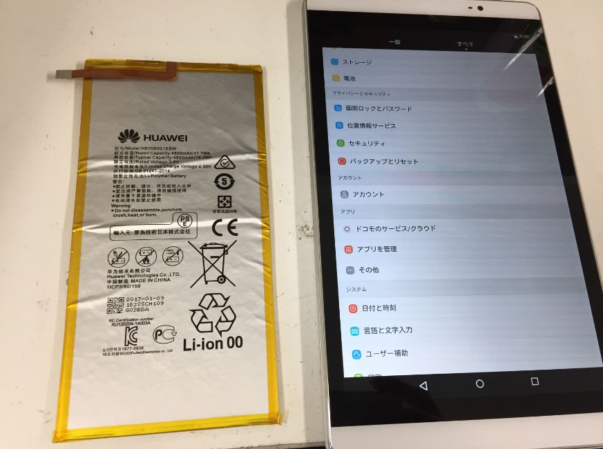【町田でドコモタブレット修理】dtab(d-02h)のバッテリー新品交換!料金は6800円と格安で充電持ち大幅向上!
