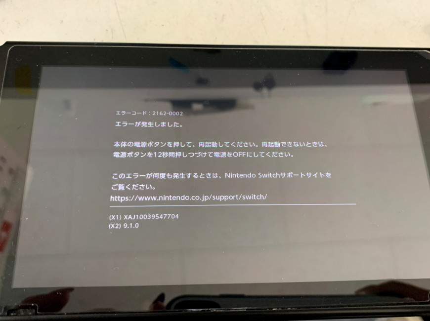 Switchの電源が突然切れてしまったので再起動してみたら「エラーコード2162-0002」と表示されて全く遊べなくなってしまったと修理のご相談を頂きました!