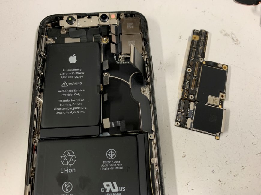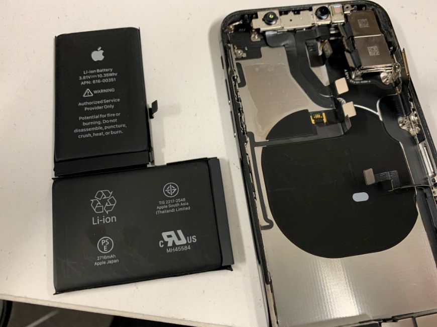 iPhoneXのバッテリーは本体にとても強力に接着されています。
