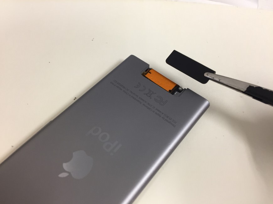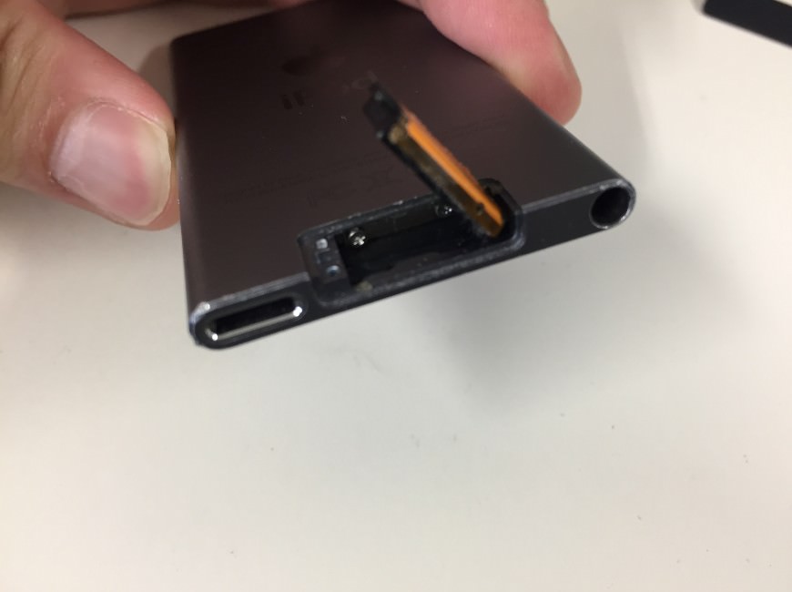 iPod nano第7世代を分解するにはまずは背面下部のプラスチックパーツを剥がします。