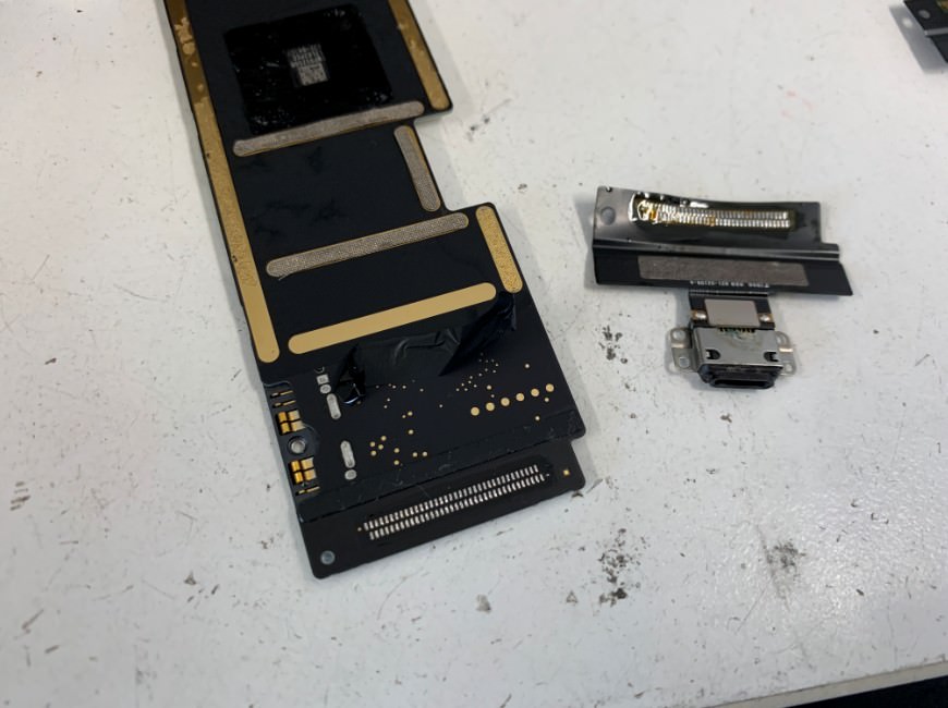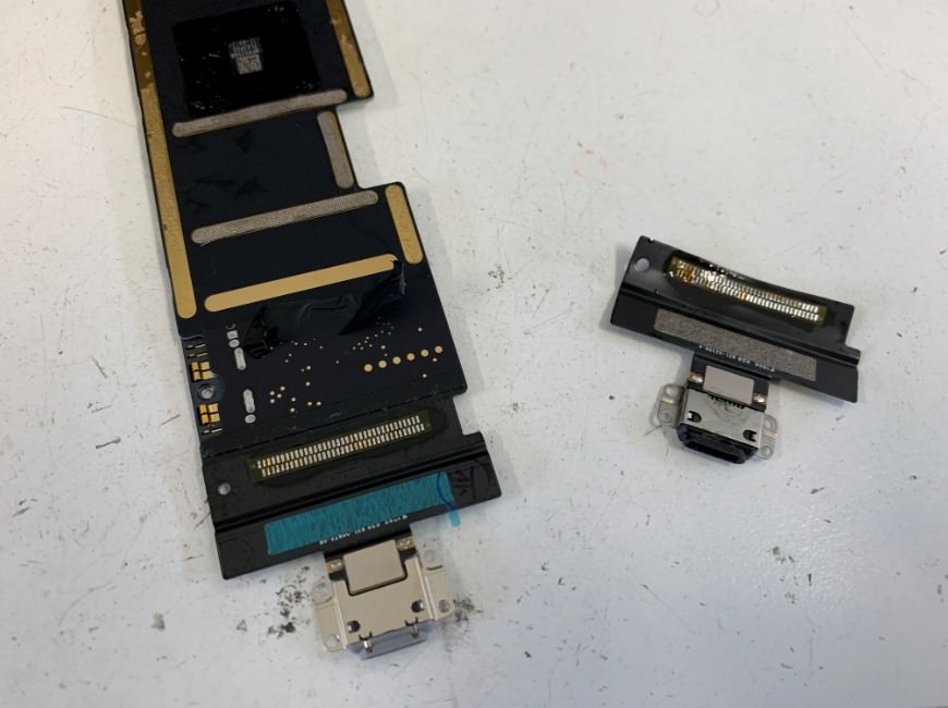 iPad Air3の充電口は基板裏にはんだ付けされています。