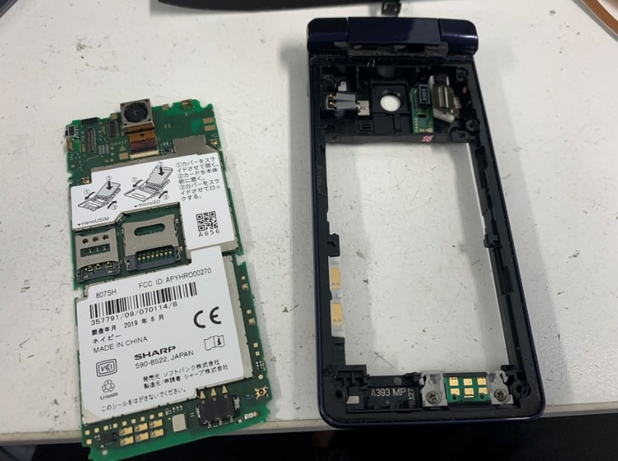 ガラケーのかんたん携帯10(807SH)が2つに折れて上下分かれてしまったということで修理ご依頼を頂きました。