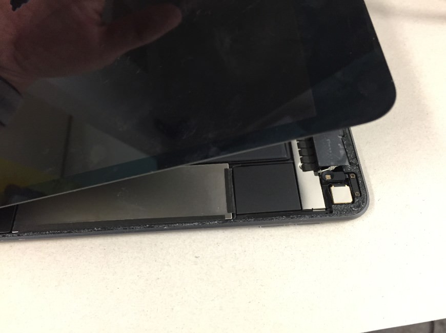iPad mini5も他のiPadと同様に、ガラスが本体に強く接着されています。