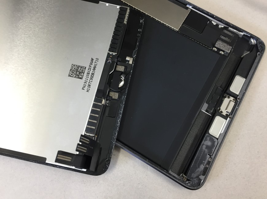 iPad mini5の表面のガラスは割れていないものの、内部の液晶が損傷してしまい全く操作出来なくなってしまったと修理ご依頼を頂きました!