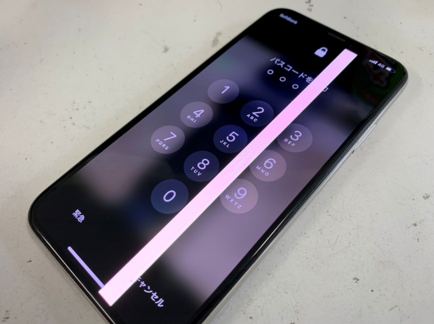 iPhoneXを少し高いところから落としてしまい、それから画面上に白い眩しい線が入るようになってしまったと修理ご依頼を頂きました!