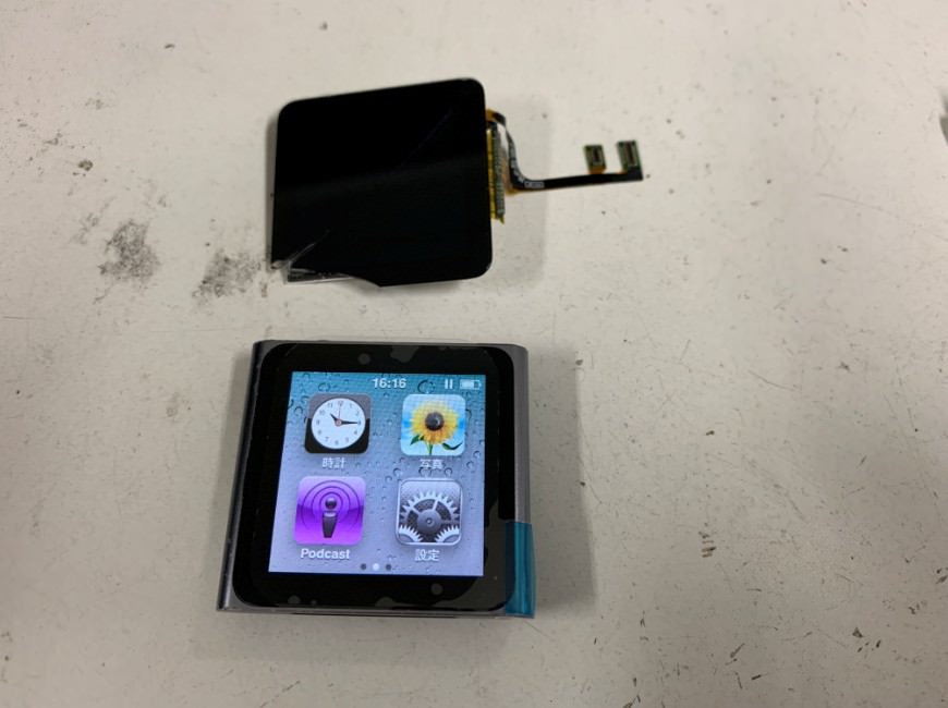 iPod nano 第6世代のガラスが割れた上に、液晶に何も表示されなくなってしまったと修理ご依頼を頂きました!