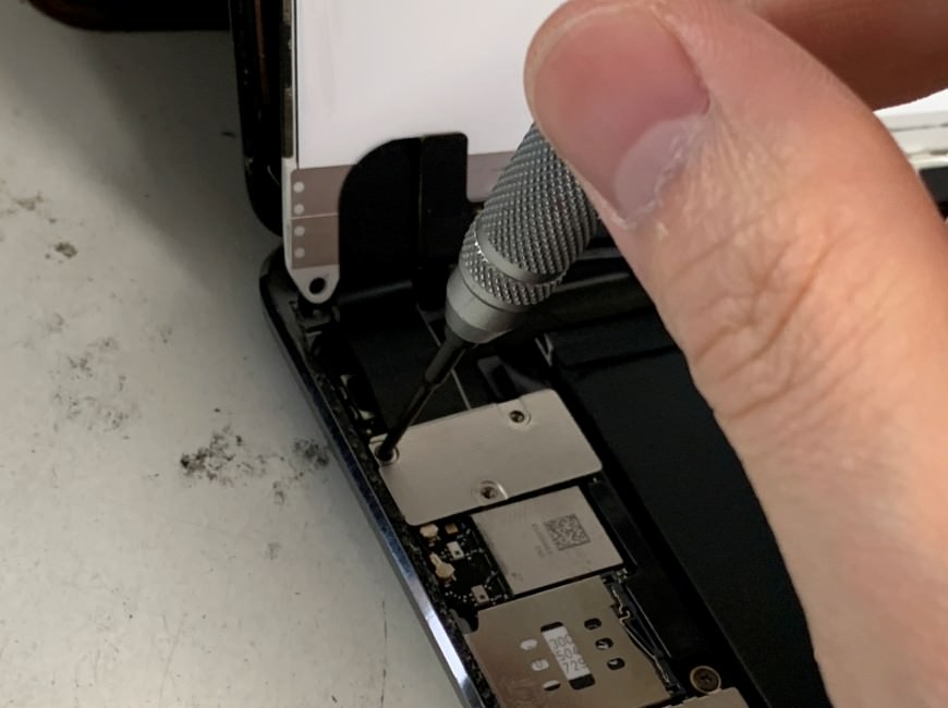 iPad mini2は銀のプレートはネジ7本で固定されているので全て外します。