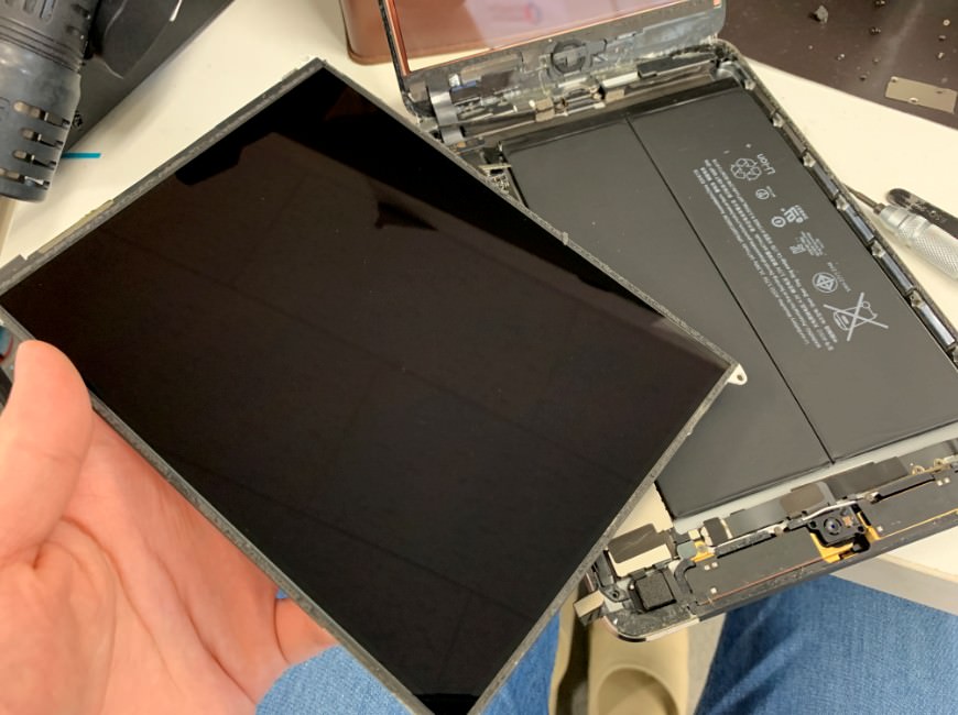 その点、スマホスピタル町田のスタッフの修理実績は何百台、人によっては何千台とiPadの修理を行っているので、あっという間に分解出来ます。