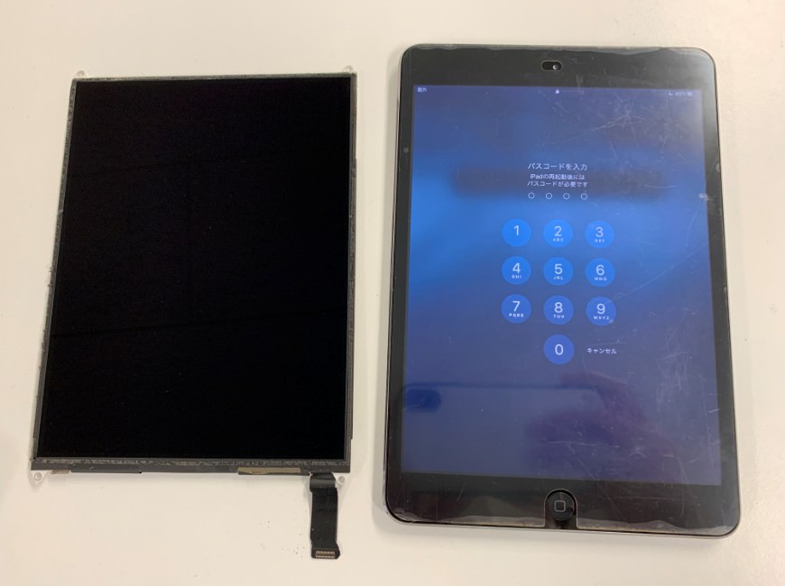 長年使用されているiPad mini2の液晶表示に異常が出始めたということで修理ご依頼を頂きました。