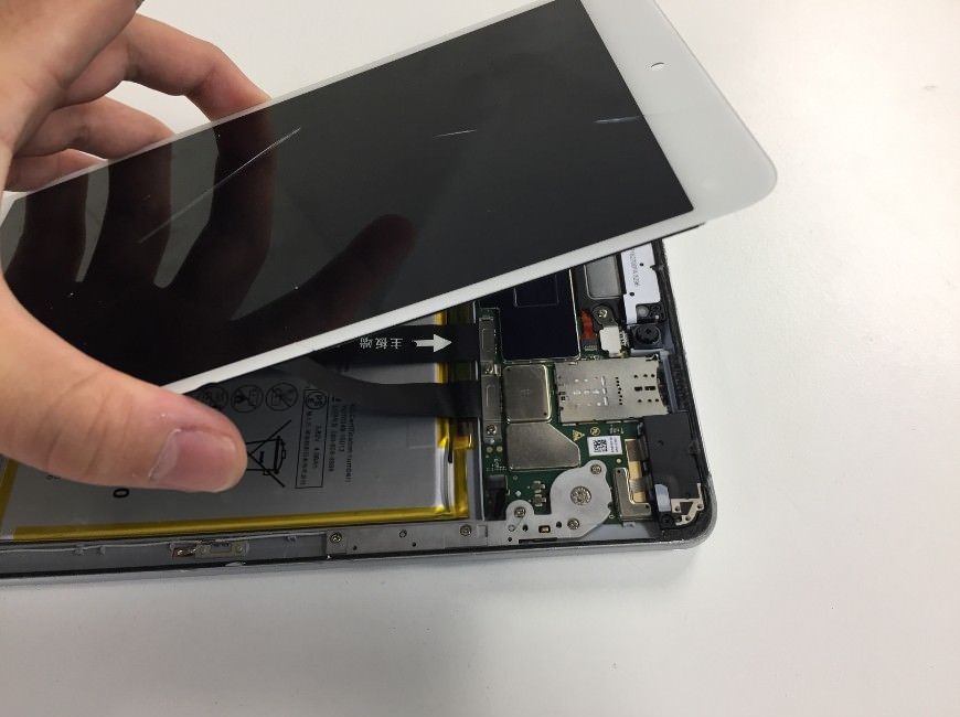 画面を持ち上げ、画面を固定したネジやプレート外します。
