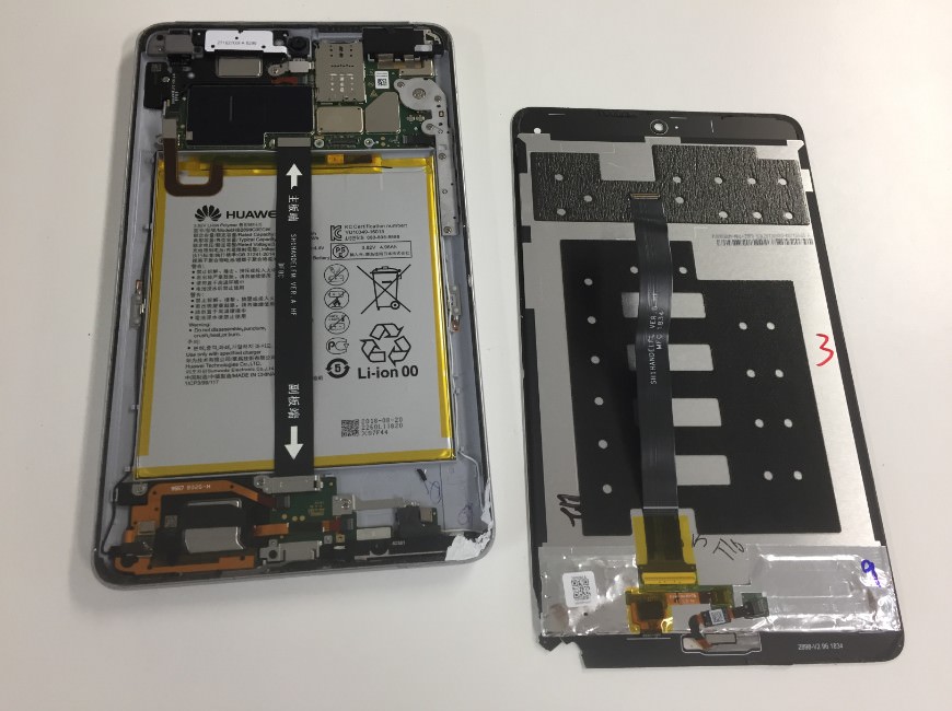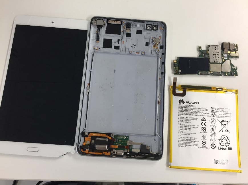 本体フレームに固定されたバッテリー、基板、充電口のついたサブ基板など全て取り出し、新しいフレームにそれぞれのせかえます。